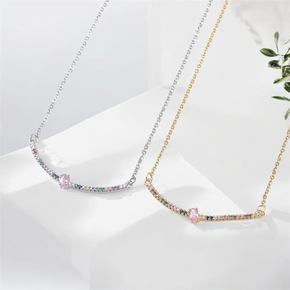 Stainless Steel Bar Pendant Necklace with Cubic Zirconia